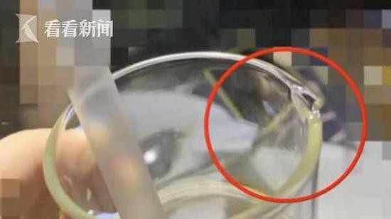 林小姐表示,当时和朋友检查了一下饮品杯,发现杯的倒水口有一个缺位,而玻璃碎正好和这个位置吻合。