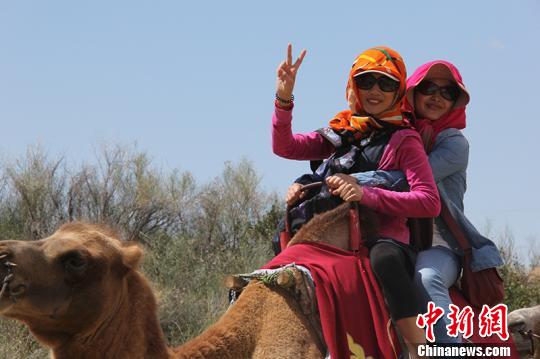 骑骆驼游沙漠成为一八五团旅游一大亮点。 杨东东 摄