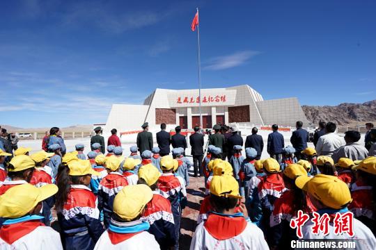 中新网拉萨9月27日电 (江飞波 曹枝清)27日,进藏先遣连纪念馆开馆仪式在海拔4500余米的西藏阿里改则县先遣乡扎布村举行,来自新疆军区军人代表、武警战士、烈士家属和当地党员干部、牧民等200余人重温了当年136名先遣连英雄壮举。