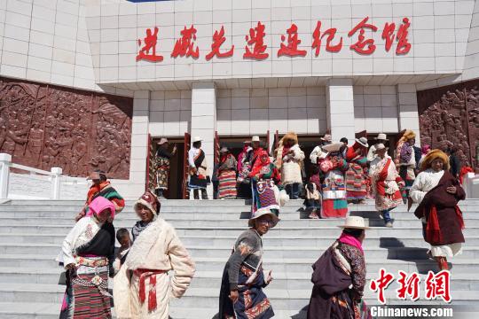 西藏阿里当地牧民参观纪念馆。曹枝清 摄