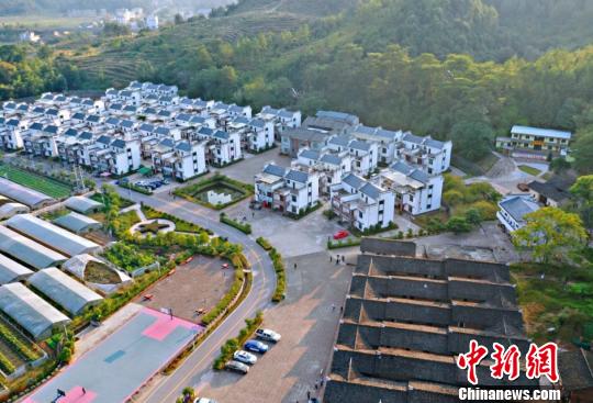 航拍镜头下,华屋被绿水青山环抱,一栋栋新式三层小洋楼鳞次栉比,白墙黛瓦,静谧祥和。新房旁一间间饱经风霜的破旧土坯房静静伫立,新旧对比,见证了华屋村的华丽巨变。