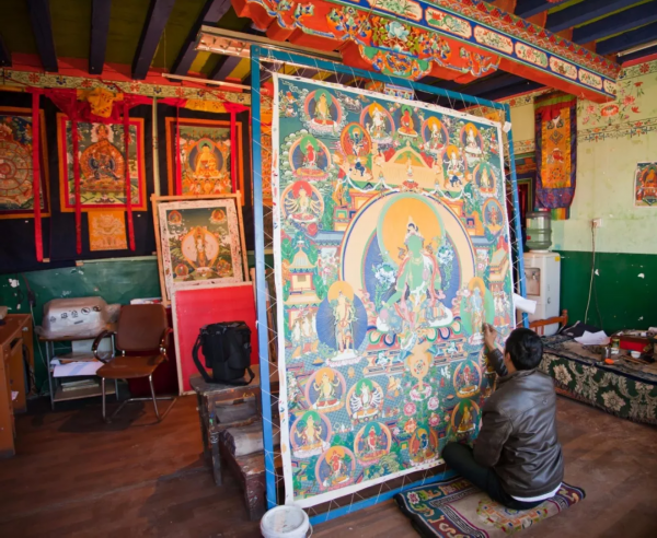 ▲画师在画唐卡。