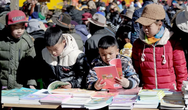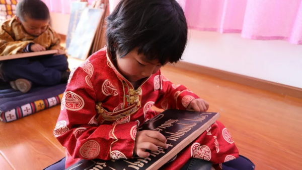 ▲ 达孜区中心小学的学生正在上藏文书法课。