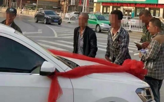 多名男子围堵婚车讨要喜钱。 米脂县公安局