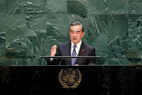 当地时间2019年9月27日,国务委员兼外交部长王毅在纽约联合国总部出席第74届联合国大会一般性辩论,并发表题为《今日之中国,世界之中国》的讲话。