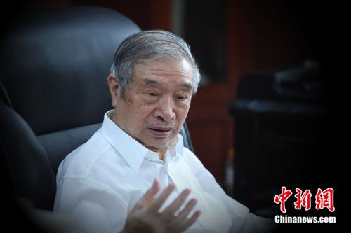 图为中国唯一一位蚕学界院士向仲怀接受中新网记者采访。