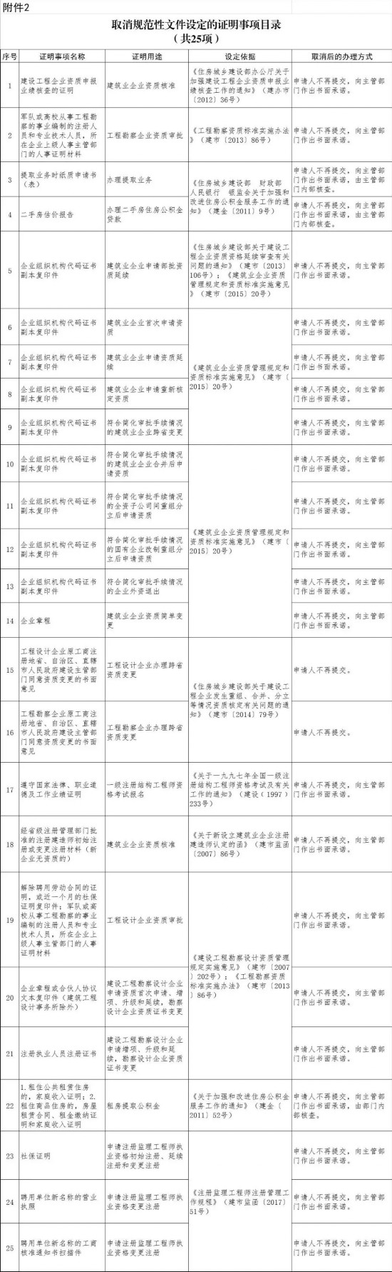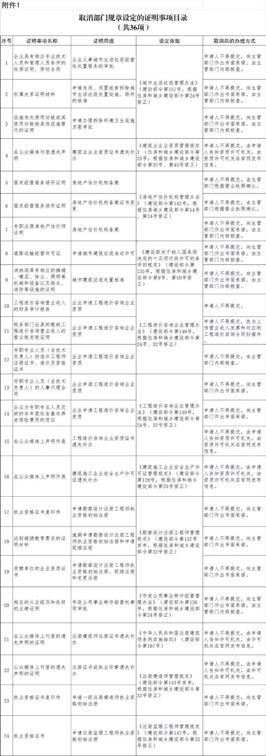 为贯彻落实党中央、国务院关于减证便民、优化服务的部署要求,住房和城乡建设部决定取消部分部门规章和规范性文件设定的证明事项,相关证明事项自公布之日起取消。