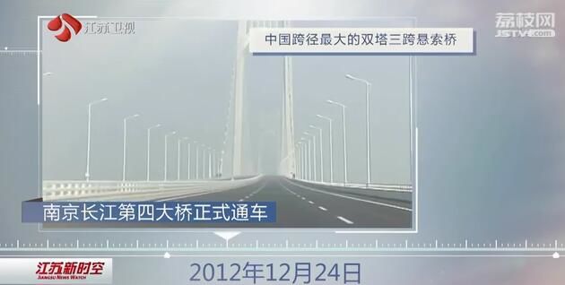 2012年12月24日,中国跨径最大的双塔三跨悬索桥-南京长江第四大桥正式通车。