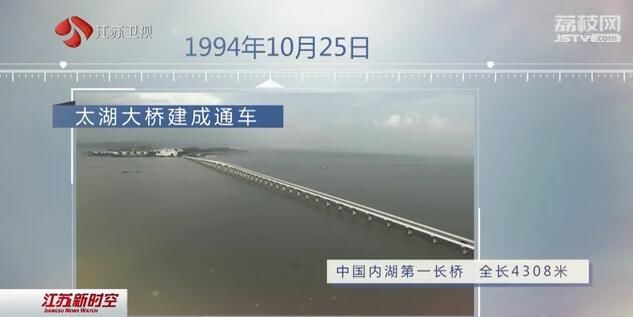 1994年10月25日,中国内湖第一长桥-太湖大桥建成通车,该桥全长4308米,为碧波太湖增添新姿。