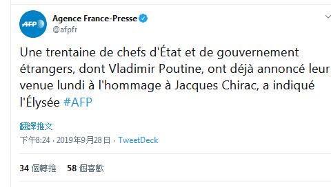 [环球网快讯 记者 李东尧]据多家法国媒体刚刚消息,俄罗斯总统普京将于当地时间下周一赶赴巴黎,出席刚刚离世的法国前总统希拉克的追悼仪式。