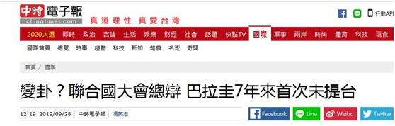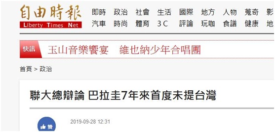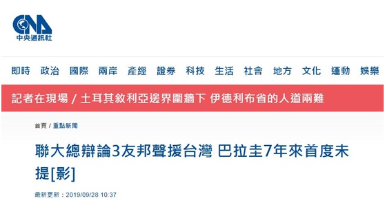 “中央社”报道称,巴拉圭外长帕拉西奥斯(Antonio RivasPalacios)27日代表该国发言,其在以西班牙语发表的演说中只字未提台湾。绿营媒体《自由时报》28日称,此为巴拉圭自2012年以来,首度未在联大一般性辩论“为我执言”。