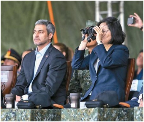 2018年,蔡英文与巴拉圭总统贝尼特斯(左)观看台军演习/图自《联合报》