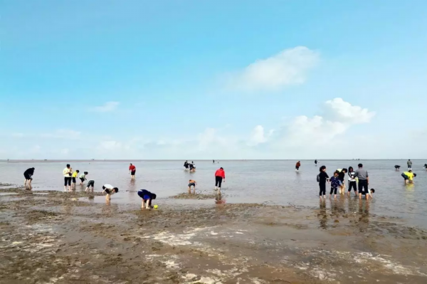 在海边生活着非常多的生物,拿着小铲子、水桶,在沙滩上拾贝壳、找水母、追小蟹、滩涂上挖文蛤,让人乐不思蜀。