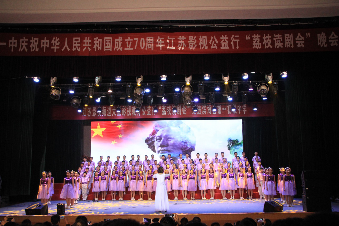 荔枝读剧会,影视来相会。9月29日,江苏影视频道大型影视教育公益行“荔枝读剧会”走进盐城滨海县第一初级中学。在庆祝新中国成立70周年之际,影视频道与该校的全体师生一起,饱含深情地唱响与祖国“同呼吸、共命运”的动人旋律。双方携手共建“江苏影视教育滨海县第一初级中学基地”,让影视教育走进中小学,传播中国优秀传统文化,弘扬社会主义核心价值观,不断提高学生的综合素质。本次活动通过江苏影视频道微信公众号全程直播。