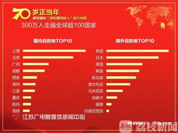 旅行是延长青春的特效药。据某旅游在线平台数据,有超过300万名生于1949年的“共和国同龄人”,走向全球超100个国家,足迹遍布“一带一路”沿线45国。最远到达南北极,最深接近马里亚纳海沟,最高到达海拔5300米的珠峰大本营,轻松打卡世界奇迹。