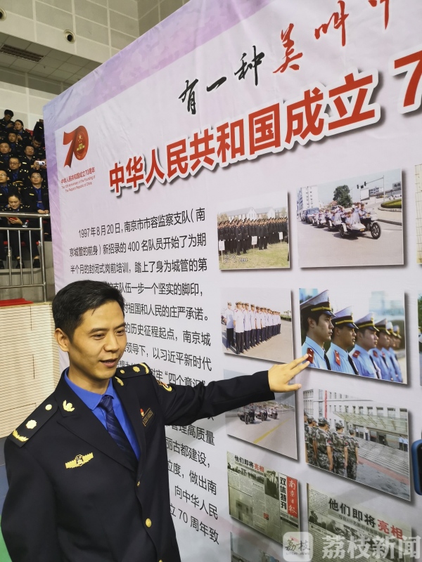 南京浦口区城管执法大队大队长庄立果在1997年加入城管队伍,已经在城管岗位上工作了22年时间,见证了南京城管的历史变迁。在经历了从1997年到2017年五次换装后,他深刻地体会到城管执法队伍的执法理念也在不断地变化。看到自己在1997年加入城管队伍时的老照片,庄立果深有感触。“这是我大学毕业以后考到了城市管理队伍,市容管理监察大队,在方山训练的时候拍摄的照片。城管当时的职能比较单一是市容管理,现在变成了综合执法,范围广泛,身上职责也越来越重,我们肯定要把工作做好。”庄立果说。