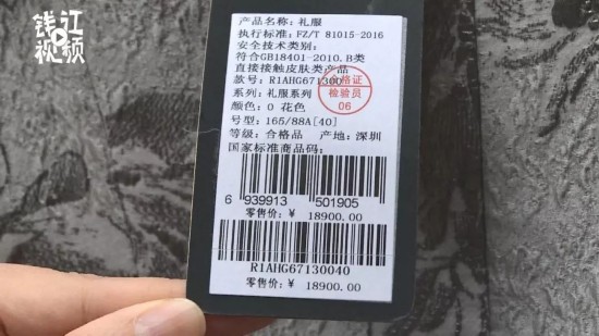王女士拿出一条灰色的连衣裙,原价18900元,品牌名称拉珂蒂,产地深圳。王女士说,去年10月,她在杭州大厦柜员的推销下以14000多元购买。等到12月杭州大厦搞活动时,柜员通过操作给王女士减去1800元差价,最终,王女士买下这条裙子花了12200元。