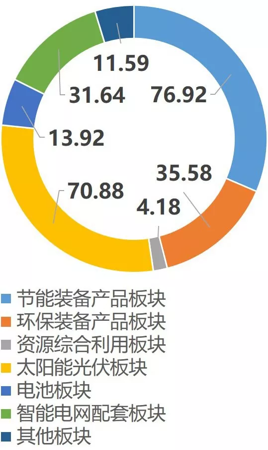 1-6月,全市节能与新能源145家列统企业实现产值244.71亿元。各细分板块产值占比如下: