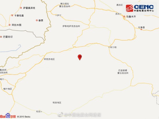 中国地震台网正式测定:09月30日14时04分在新疆阿克苏地区沙雅县(北纬40.90度,东经83.48度)发生4.1级地震,震源深度20千米。