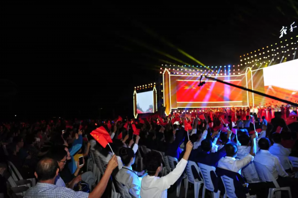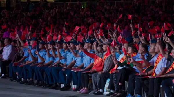 晚会在大合唱《歌唱祖国》的动人旋律中缓缓落下帷幕,全场观众起立用铿锵有力的歌声、整齐挥动的红旗,表达对祖国最真挚的祝福。整场晚会一系列节目,凝聚起全市人民同心筑梦的精神力量,激发起奋斗新时代、改革再出发的豪情和信心。