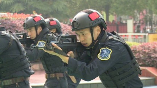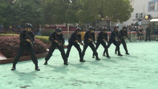 早上9点,在庄严的国歌声中活动正式开始。升旗仪式结束后,市公安局巡特警大队的队员给孩子们带来了精彩的反恐表演,让小朋友们近距离感受枪械的魅力。