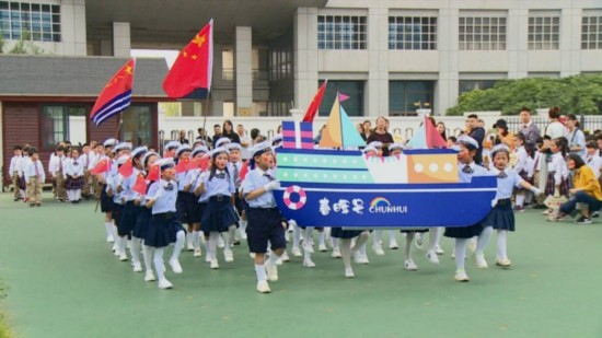 早上八点,全校三百多名师生齐聚操场,精神抖擞,意气风发。今天的小小阅兵式上,学校还请来了老海军——秦卫邦。向革命前辈致敬是本次活动的主要内容。别看孩子们年纪小,但是走出来的正步还真不错。最引人注目的便是一年级一班的小朋友,他们身穿小小海军服,向老海军致敬。