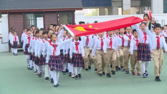 今天上午,泰州市城东中心小学春晖校区的师生们,邀请八十高龄的老海军秦卫邦,共同参加小小阅兵式,向国旗敬礼,向祖国致敬。
