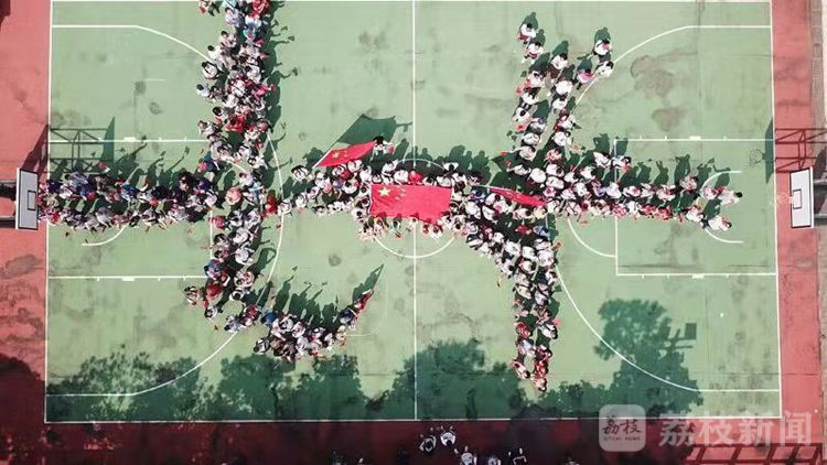 游船中午停靠到南丫岛,市民们在岛上排成“七十”的字样,欢庆中华人民共和国成立七十周年。