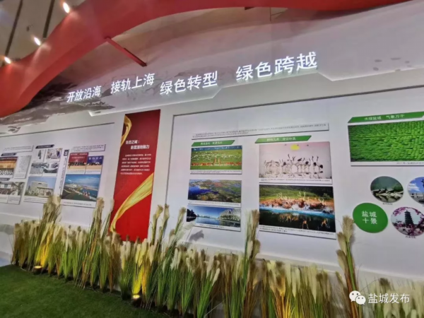 70年励精图治,70年砥砺前行。靓丽的盐城馆,以历史的纵深与时代的担当为展陈主轴线,通过综合图文、实景和新媒体、多媒体技术,全景呈现产业之城、开放之城、生态之城、幸福之城“四个新盐城”建设的生动实践和波澜壮阔的奋进历程。