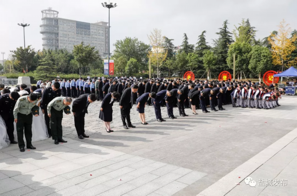庆祝新中国成立70周年之际,9月30日烈士纪念日上午,盐城市社会各界纪念革命烈士活动在新四军纪念馆广场隆重举行。