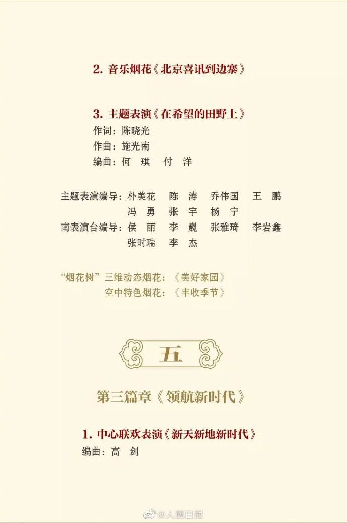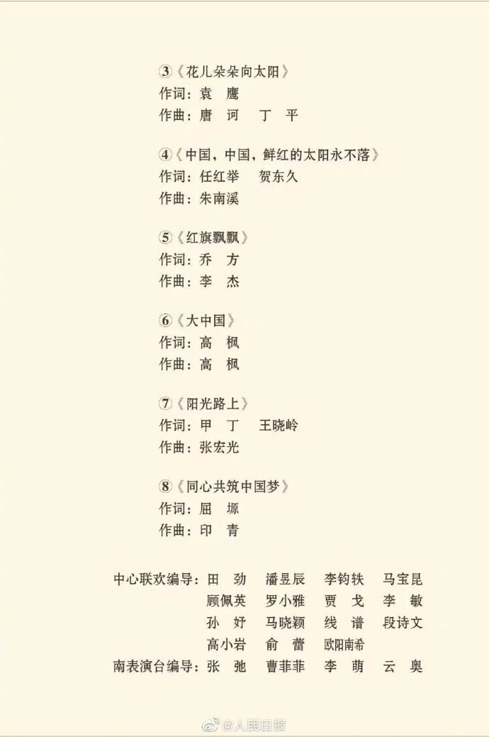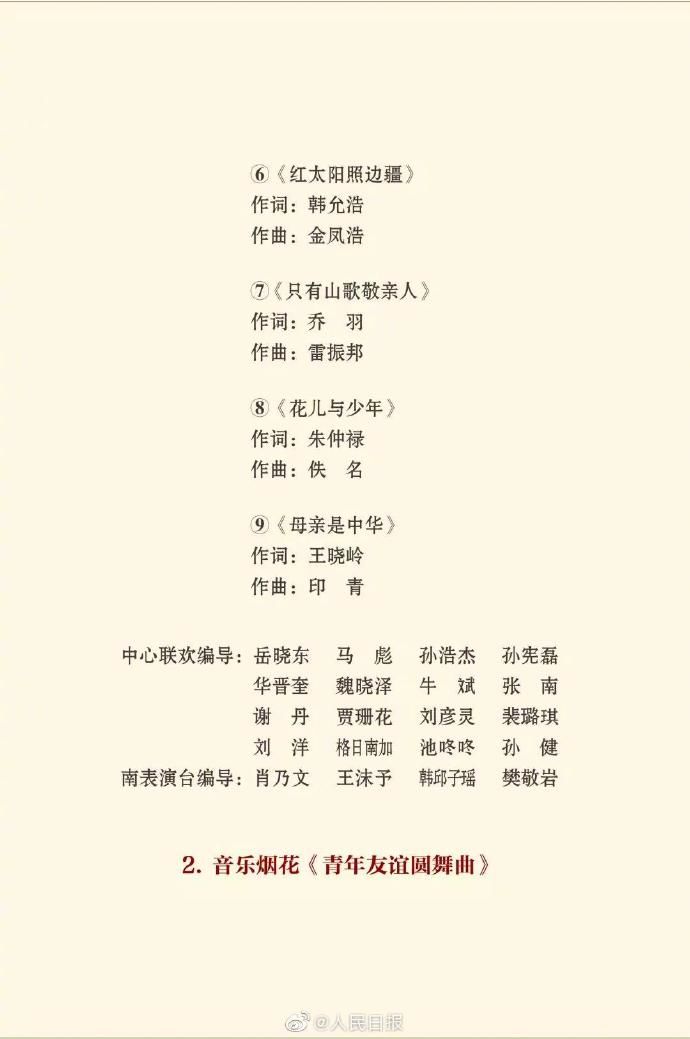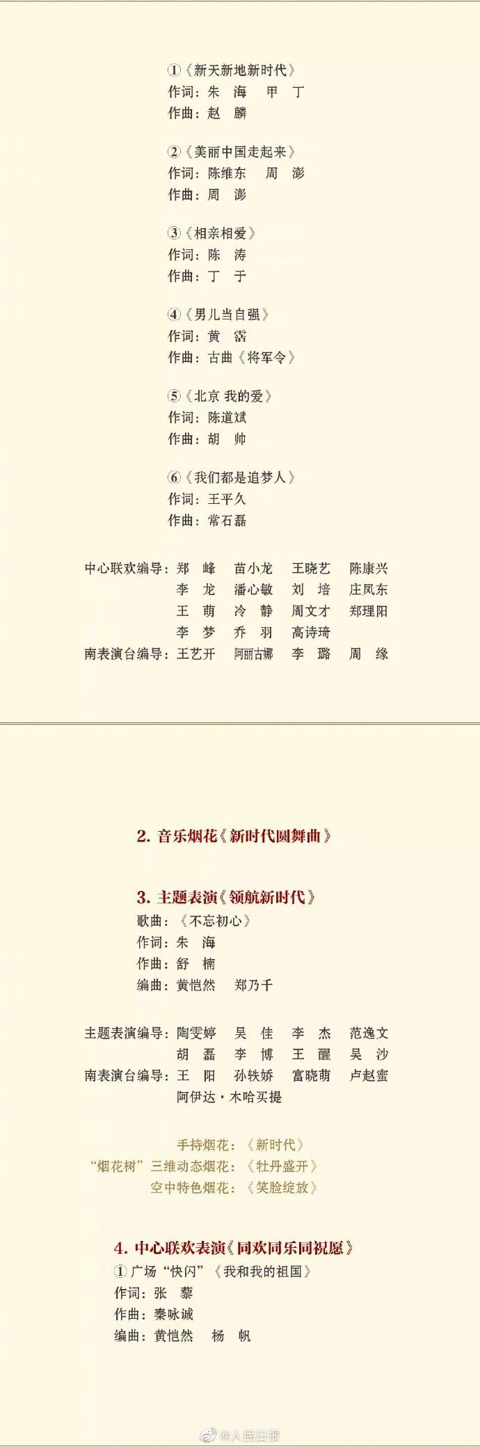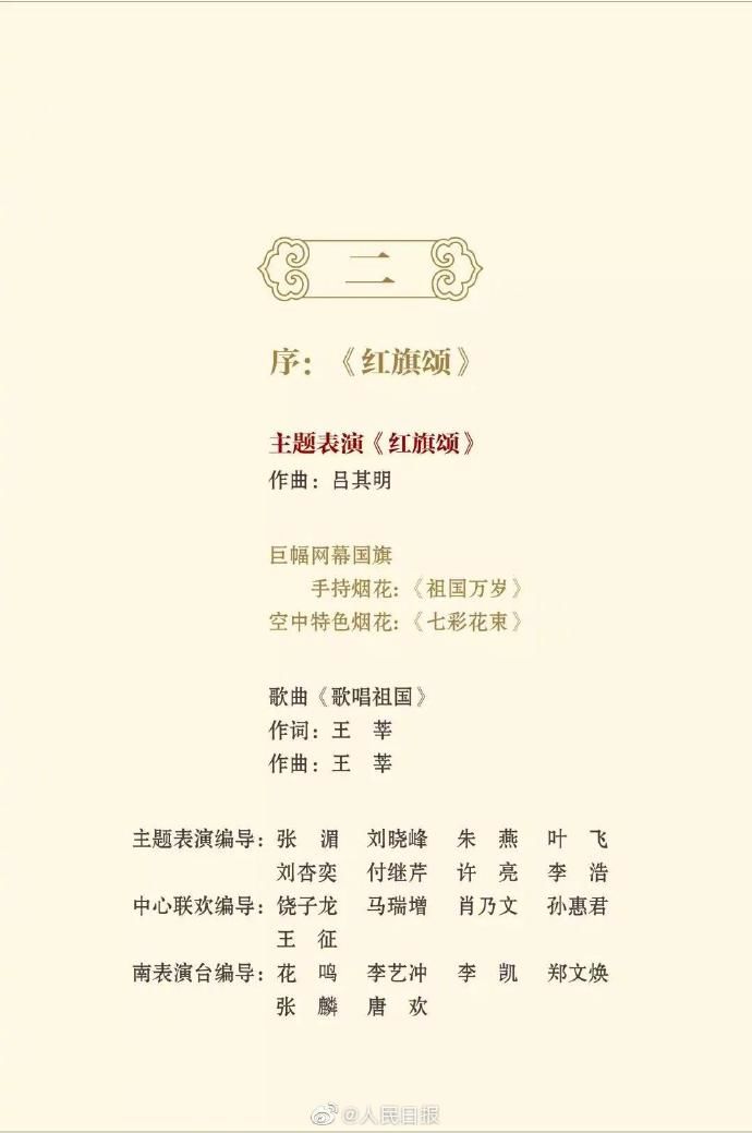 今晚8点,庆祝新中国成立70周年国庆联欢活动在北京天安门广场隆重举行。节目单快收好了!还有90米长60米高的巨幅国旗与25米高的“烟花树”,就问你们期不期待!