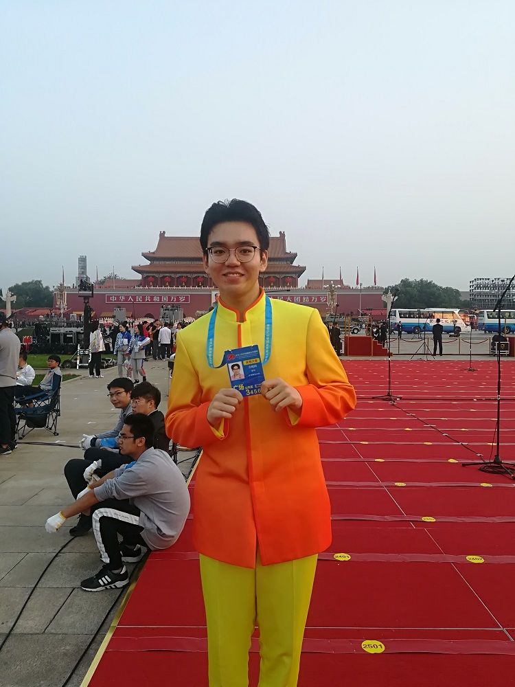 李伟,北京师范大学法学院大二学生,合唱团成员之一。4月份,学校接到合唱团成员征集的通知,便以艺术学院为主,各院系为辅进行选拔。外表帅气,拥有管乐特长,又是学校艺术团成团之一的李伟被顺利选中。“从7月13日开始,我们在校内进行秘密训练。”李伟透露:“有专业的指导老师帮我们辅导,从我们的精神面貌、政治素养,包括我们的音准、记词的水平等等专业方面进行选拔。”从最初北京师范大学选拔出100人,到最终决定出82人,李伟经历了重重考验,最终站在了天安门广场上。