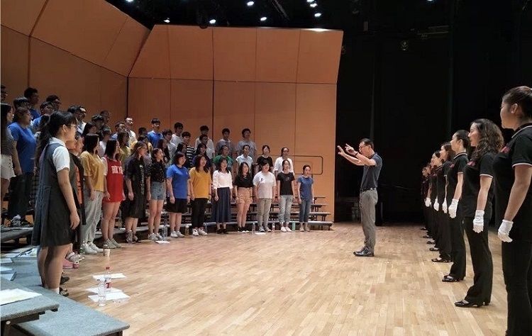 来自北京交通大学的谭添慧,是语言与传播学院的一名大二学生。“我们学校有80位同学参加合唱团,其中有50位是原学校合唱团的成员,剩下的30位同学来自各个学院,自愿报名参加。”谭添慧说。从6月份开始选拨,到7月1号正式进行演出的排练,谭添慧每天从下午两点左右一直训练到九点。“除了一些常规的声乐训练,我们还会进行一些体能训练,为我们今天2个多小时的站立演出提前储备能量。”