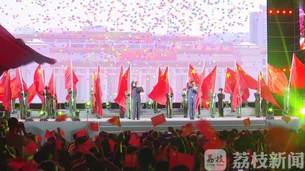 “我和我的祖国,一刻也不能分割,无论我走到哪里,都流出一首赞歌。”当《我和我的祖国》歌声响起时,近万名观众纷纷起立跟着唱了起来,动人的旋律、整齐的歌声、至深的情感,在长江口北久久回荡,活动在万人大合唱中圆满结束。