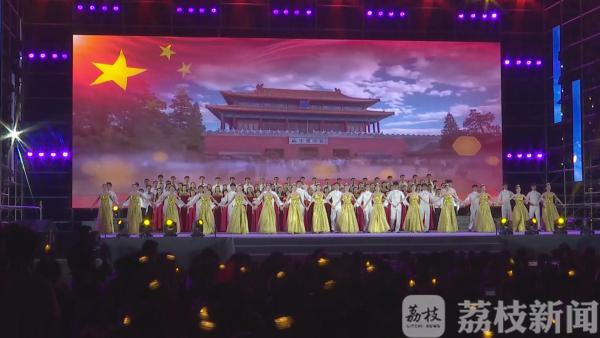 傍晚时分,南通市社会各界群众大联欢活动暨2019紫金文化艺术节南通分会场在狼山国家森林公园进行,各界英模劳模代表与各条战线的群众8000多人欢聚一堂,用歌舞表演诉说着对祖国母亲的热爱。