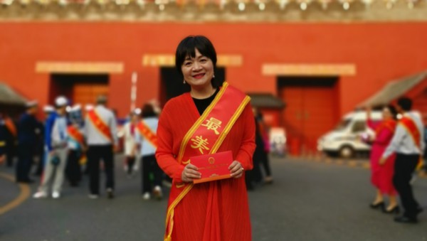 “非常光荣。”身佩“最美人物”绶带,观礼台上的她笑靥如花。