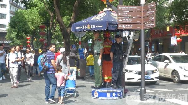 警方在夫子庙设置了11个屯兵点,武装巡逻力量,有武警,有消防力量,三人一个屯兵点, 50米一个距离,遍布景区的核心部位。警方同时组织了大量巡逻警力,接处警的同时,在人流量较大的地区疏导,确保市民们的安全。