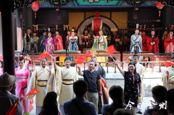 国庆节当天上午9时,回龙窝汉乐体验馆里热闹非凡,游人们驻足在这古色古香的庭院,欣赏了大型民族音乐会《汉乐华章》。