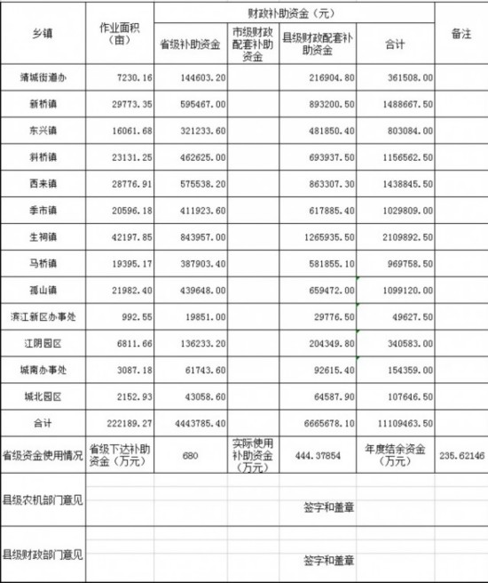 机械化还田作业补助汇总表