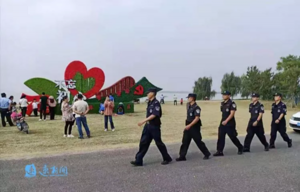 和许多民警一样,泗阳县公安局卢集派出所所长赵戍这个假期不能安心在家休假,作为成子湖旅游度假区假期安保组组长,责任更大,景区安全、游客人身安全是他最大的牵挂。赵戍介绍,这几天来这里游玩的游客每天都在2万人左右,景区面积大、人多,秩序维护、安全巡查工作任务重。他们每天早上7点30分到晚上20点30分要坚守这里,保障游客轻松游玩、安全回家。