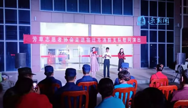 10月3日晚,宿迁芳草志愿者协会的志愿者们走进宿迁市消防支队慰问演出。“每每万家团聚时刻是消防员们工作最为紧张的时刻,他们不能享受假期和家人团聚时光,是一群‘最美的逆行者’。我们组织的这次慰问演出,是为了表达我们对消防员的敬意。”志愿者高方介绍,参加这次演出的志愿者一共有50名。为了这次慰问演出,他们放弃假日休息时间,精心筹划,编排出歌舞、快板、相声、器乐等16个节目。