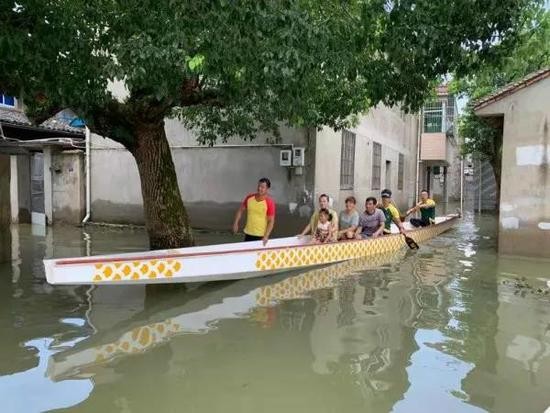 “早上接到电话,说家门口的积水很深,根本出不来,我们都急死了。没想到,村里还有龙舟队,直接就过来帮忙了。”