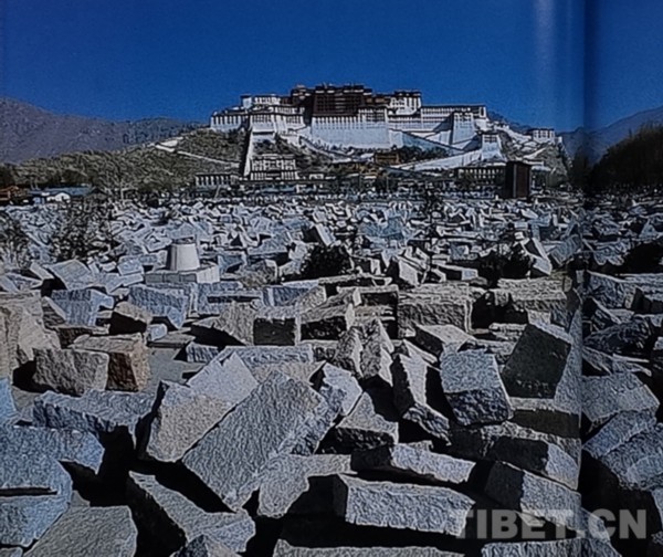 图为布达拉宫广场铺设工程现场资料 翻拍:王淑
