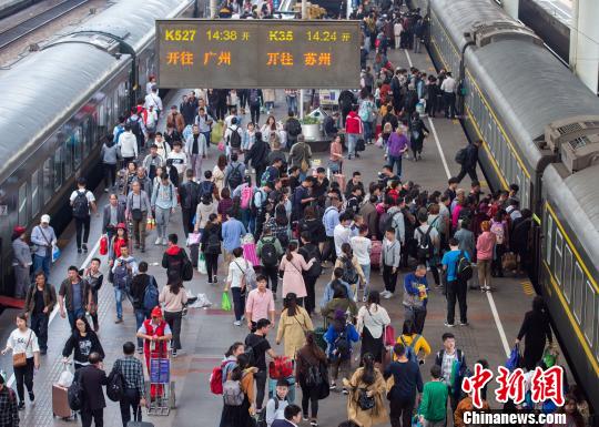 这个国庆节假期,南京站的客流熙熙攘攘。苏阳摄