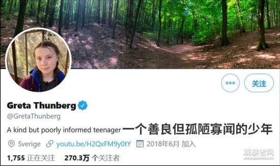 瑞典16岁环保少女格里塔 通贝里(Greta Thunberg)最近与包括特朗普、普京、马克龙、特鲁多等多个大国领导人进行着交锋。