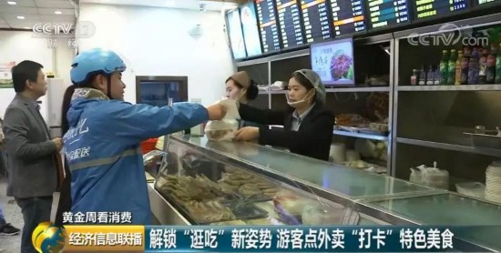 今年国庆假期,有不少游客解锁了品尝美食的新姿势:边逛边吃。在各地旅游景区,除了人头攒动的游客,还多了不少外卖小哥的身影。