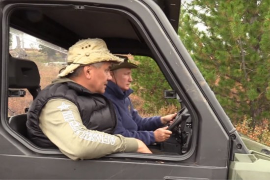 当晚,克里姆林宫发布普京赴荒野休假的视频,镜头中,普京与俄罗斯国防部长绍伊古驾车穿梭在野外。