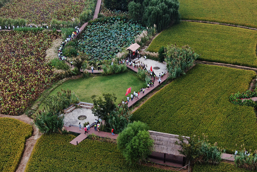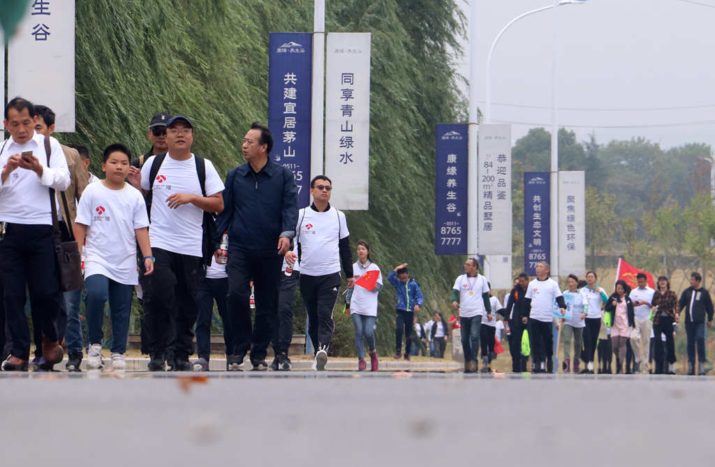 上午9点,来自各地的500多名徒步爱好者从康缘养生谷出发,沿着茅山半岛原滩沿湖风光带、别墅区、彩虹路、游船码头等线路进行环湖徒步走,观湖光山色,赏金色稻田,感受水韵江苏的美丽风景。坐落在茅山脚下的茅山湖,旅游资源丰富,自然风光独特,生态环境优美。虽然今天天气阴沉,但并不影响大家的热情,这些徒步者中有耄耋老人,有家长带着孩子一起参加,沿途秀丽的风景给大家留下了深刻的印象。