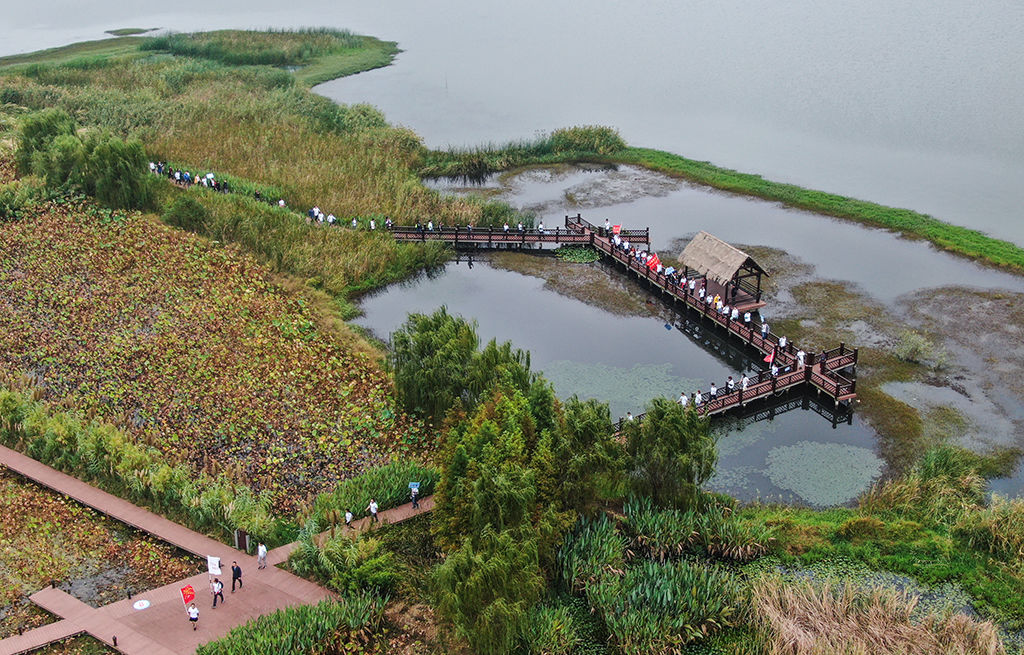 在九九重阳节到来之际,今天上午, “大美江河湖海,走遍水韵江苏”大型重阳万人亲水徒步走活动在全省十三地市13处著名水韵风光特色地标景点同步启动。镇江站活动在风景秀丽的句容茅山湖举行。