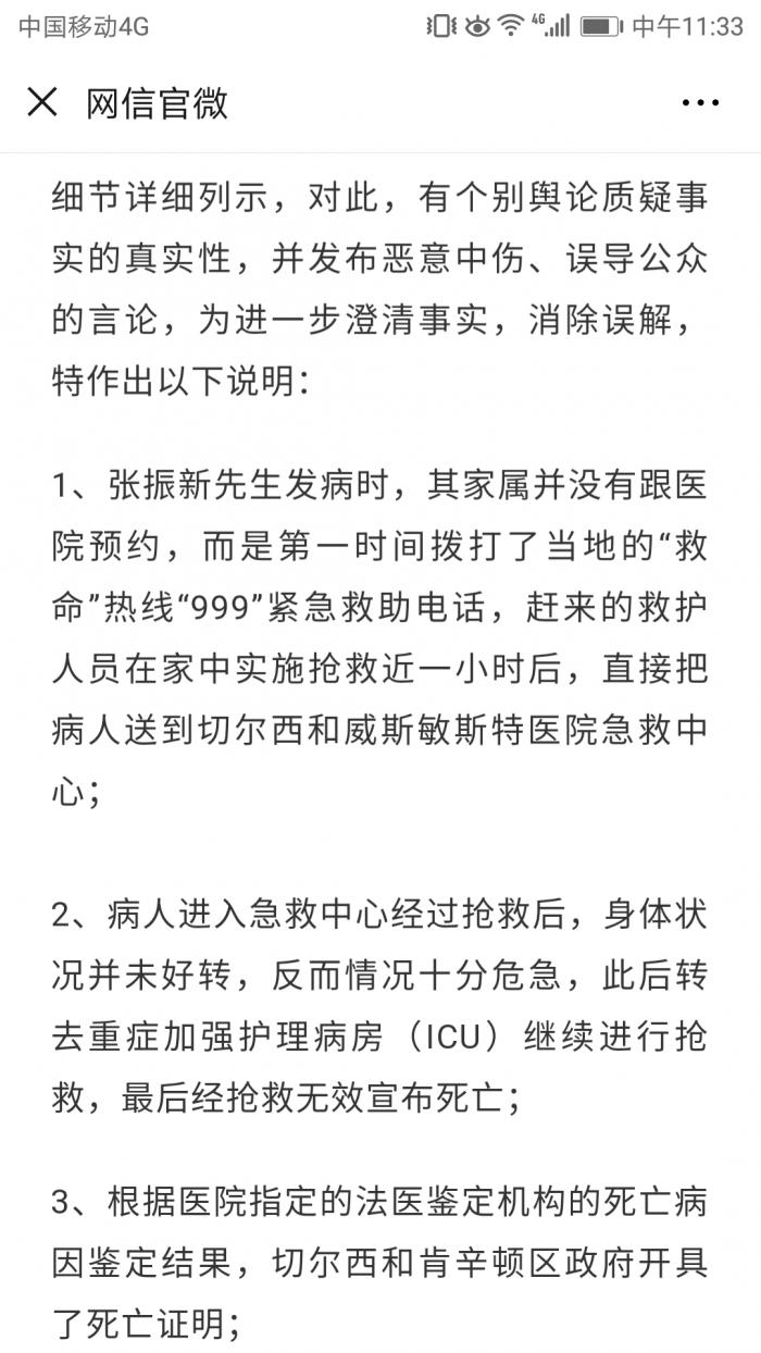 10月8日,网信官微再发公告,进一步说明张振新救治细节。